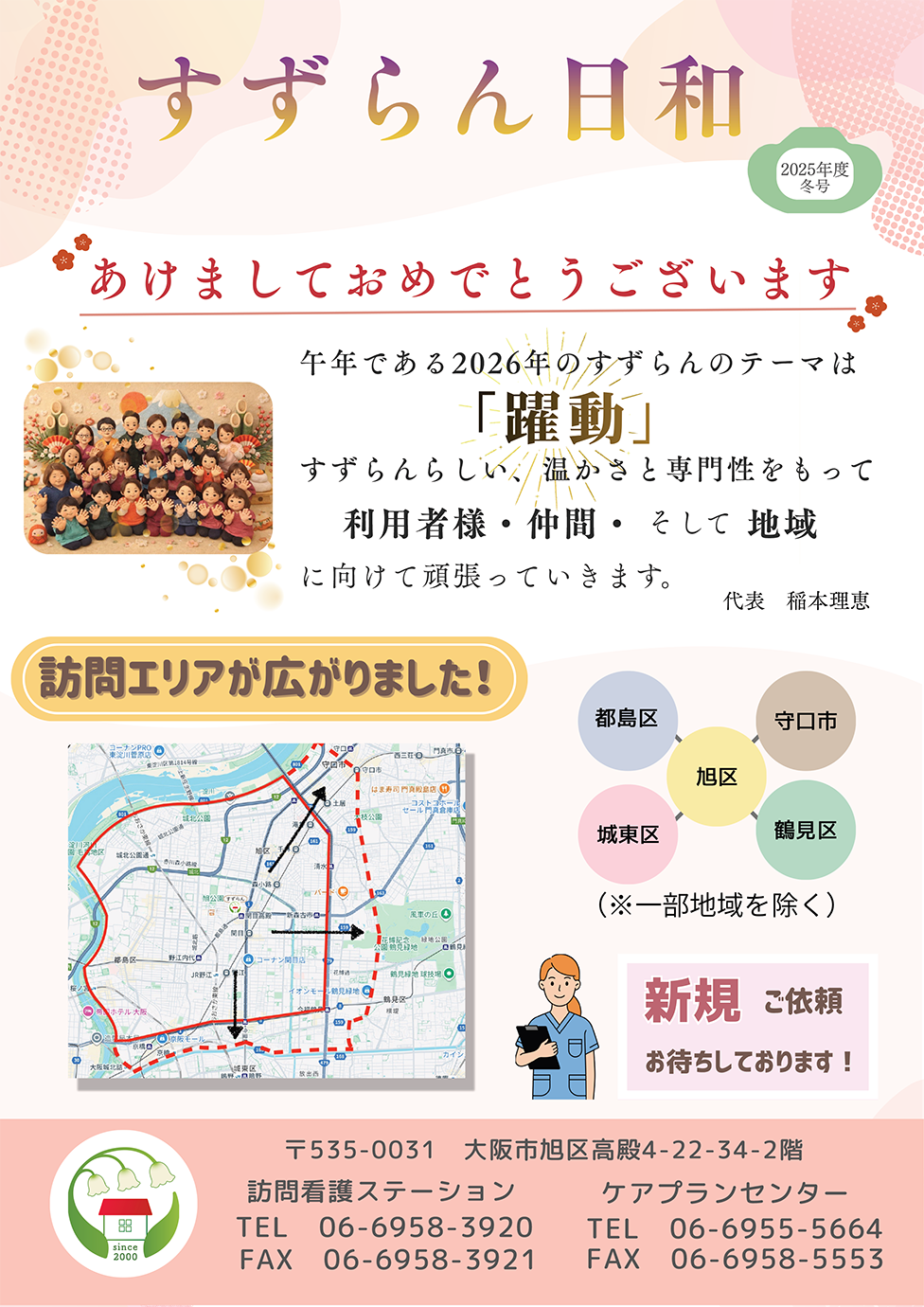 お知らせ「すずらん日和」冬号のお知らせ|大阪市旭区の訪問看護・ケアプランセンター|訪問看護ステーションすずらん